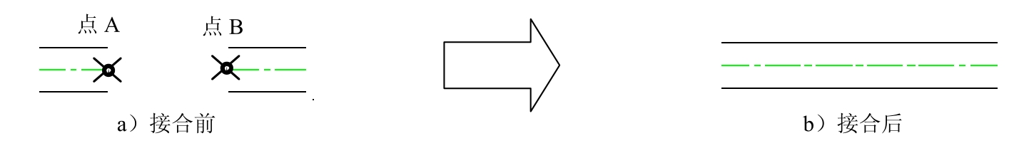 全部接合就是将使用单个剪切或全部剪切后断开的多线重新接合在一起。在选择“全部剪切”方式后单击图4.2.17a所示的多线上的点A和点B,此时点A和点B之间的部分重新接合在一起,如图4.2.17b所示。