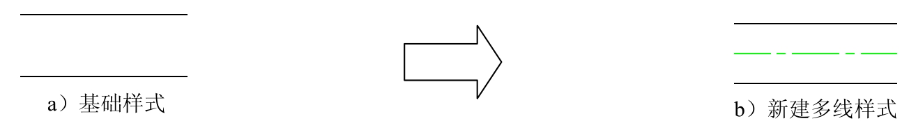 由于在绘制多线后,多线的属性无法更改,在绘制多线前需先设置多线的样式。下面通过图4.2.1a所示的图形(由基础样式创建的图形)为例,说明绘制图4.2.1b所示(使用新建的多线样式绘制的图形)的多线的一般操作步骤。