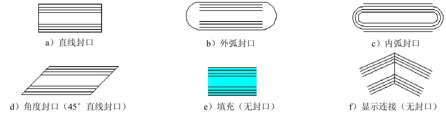 区域:可使用该区域中的选项,对多线样式设置不同的封口样式。