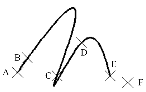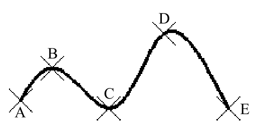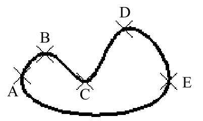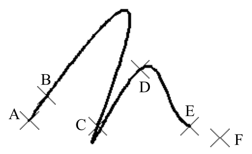 Step2. 指定样条曲线的拟合点。依次选取A、B、C、D、E五个位置点。