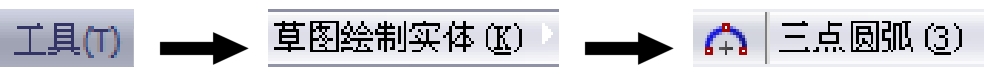 方法三: 三点圆弧——确定圆弧的两个端点和弧上的一个附加点来创建一个三点圆弧。