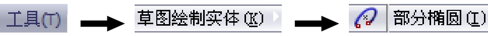 Step3. 定义部分椭圆第一个轴。在图形区的某位置单击,定义椭圆的长轴/短轴的方向。