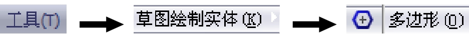 的提示下,在图形区的某位置单击,放置六边形的中心点,然后将该多边形拖至所需大小。