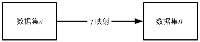 给定一个数据集 A (定义域),假设其中的元素为 x ,现对数据集 A 中的元素 x 施加对应法则 f ,记作 f ( x ),得到另一个数据集 B (值域),假设数据集 B 中的元素为 y ,则 y 与 x 之间的等量关系可以用 y = f ( x )表示,我们把这个关系式称为函数关系式,简称函数。函数的映射关系如图1.28所示。函数概念包含3个要素:定义域 A 、值域 B 和对应法则 f ,其中核心是对应法则 f ,它是函数关系的本质特征。