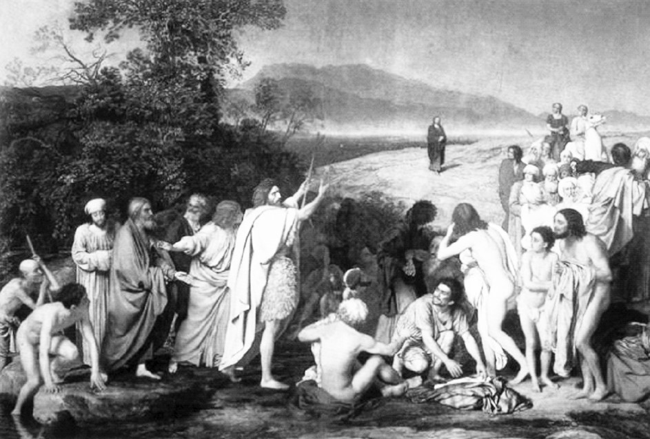 公元1世纪初期,施洗者约翰在犹太人中不断地宣讲,即将要降临一个比自己伟大得多的人,他将用圣灵取代水为人们实行洗礼。不久,童贞女玛丽亚受天使指示,以处女之身怀孕。玛丽亚的未婚先孕引起了其未婚夫约瑟的极度不满,他打算解除与玛丽亚的婚约,但被天使劝阻了。经历十月怀胎,玛丽亚在巴勒斯坦的伯利恒诞下了耶稣。传说,耶稣的降生产生了很大的震动。当时的犹太希律王因害怕耶稣成为犹太人的国王,下令杀死全部的新生婴儿。玛丽亚和约瑟在天使的指引下,带着耶稣逃到埃及,直到希律王死后才回到伯利恒。