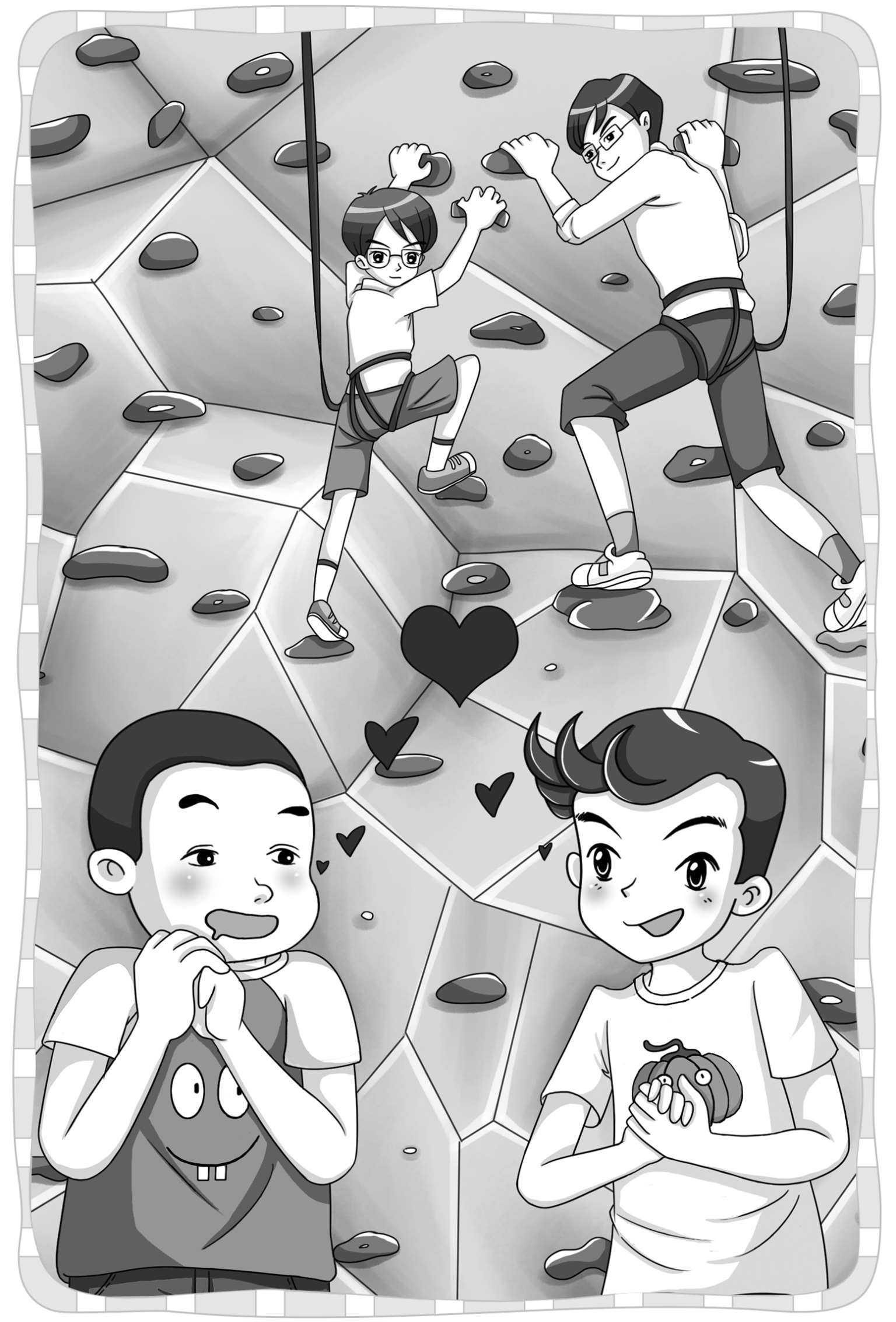 再看看岩壁上的其他父子,也都像好哥们儿似的,互相鼓励,互相帮助,奋力地向上攀爬着。虽然姿势各不相同,但无一例外,他们身上都洋溢着一种叫作“幸福”的味道。