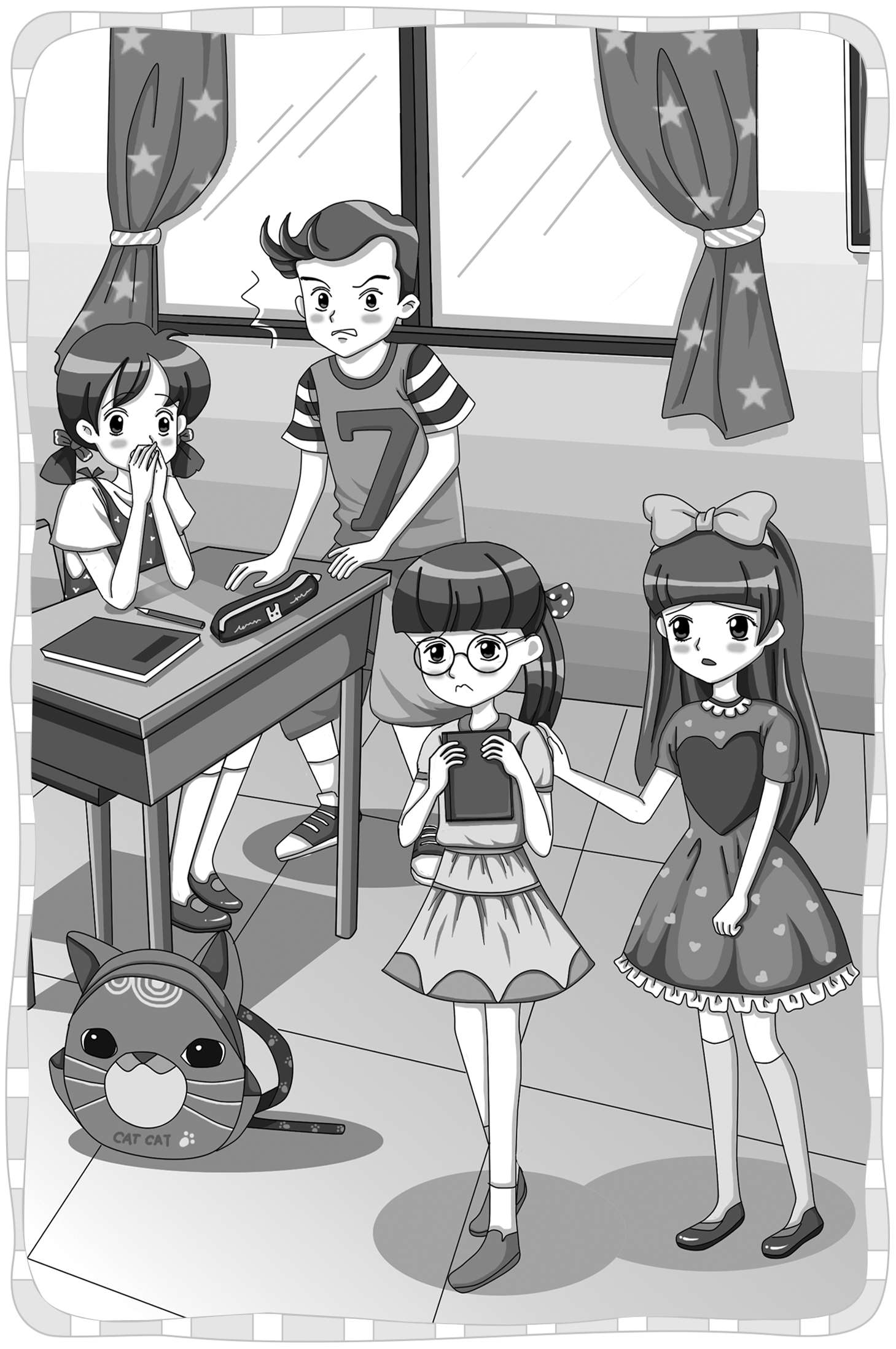 胡小闹停止了吐沫横飞的讲述,和小樱桃对视了一眼,目光齐刷刷地转向教室门口——袁媛像一尊雕像似的站在那儿,后面站着疑惑不解的思悦。