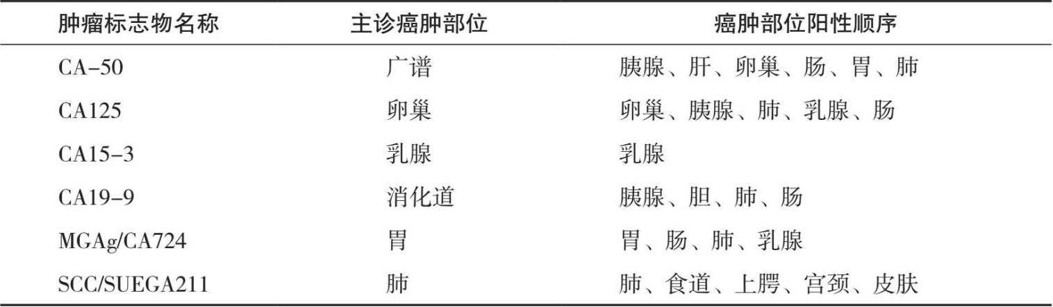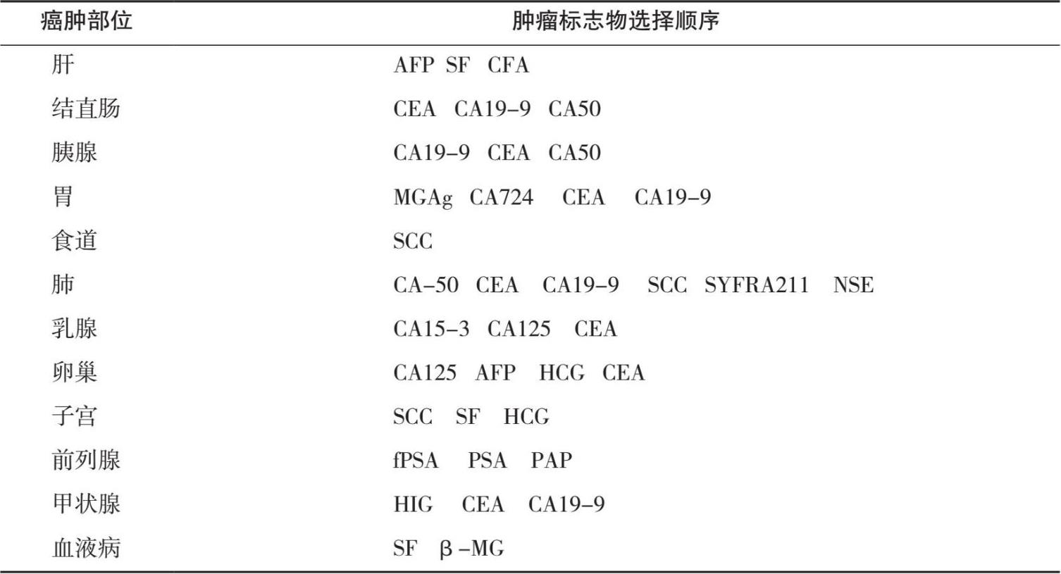 表1.8 肿瘤标志物主诊及阳性顺位