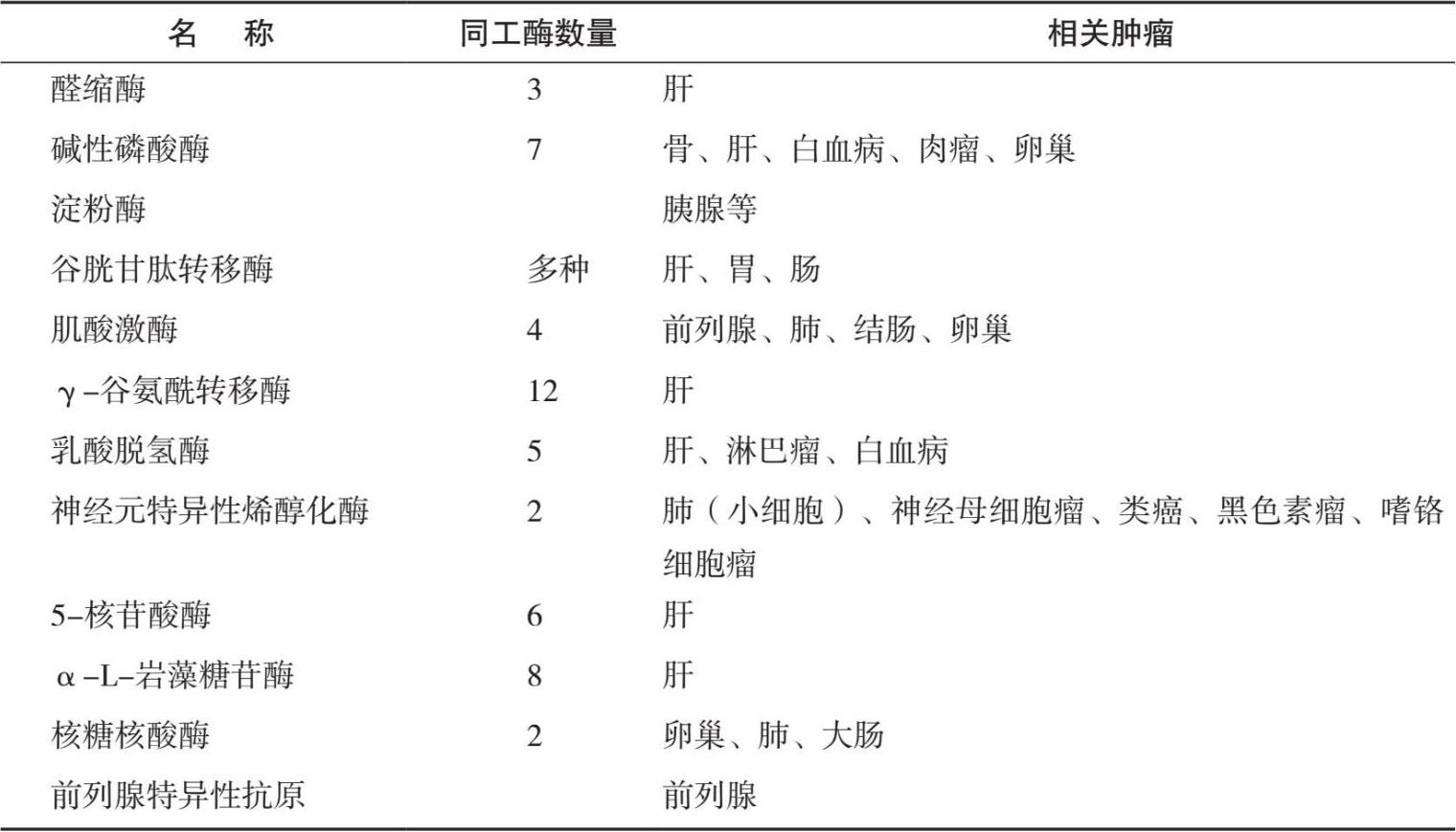 表1.7 部分肿瘤标志物与常见肿瘤相关性