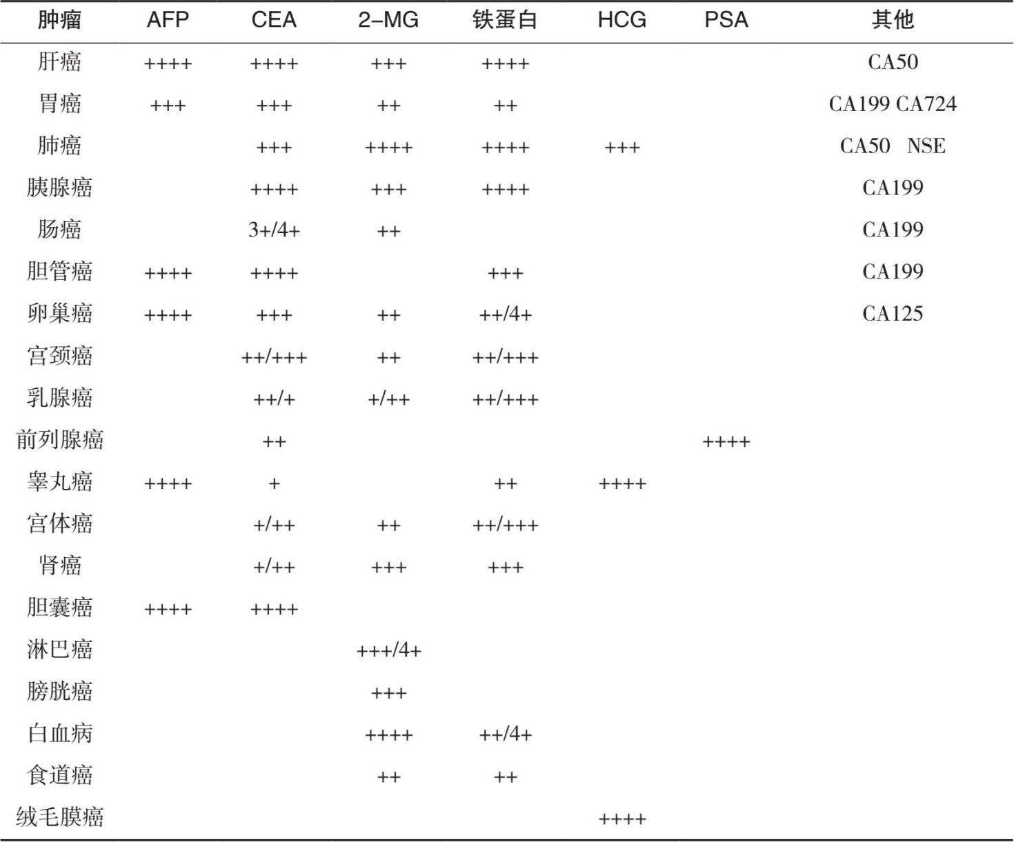 表1.9 肿瘤标志物联合应用