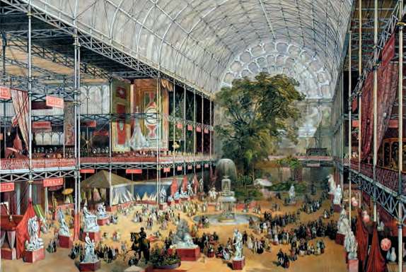 1851年在伦敦举办的万国工业博览会,是第一次真正意义上的世界博览会。作为主会场的水晶宫成为最大亮点,也是维多利亚时期英国强大工业实力的体现[参见第58章]