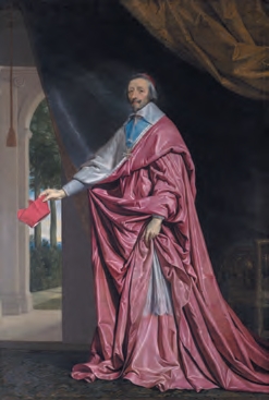 黎塞留是法王路易十三的宰相,也是天主教枢机主教,以强硬手段巩固了王权专制制度,成为将法国改造成现代国家的功臣(Philippede Champaigne,1640年)[参见第52章]