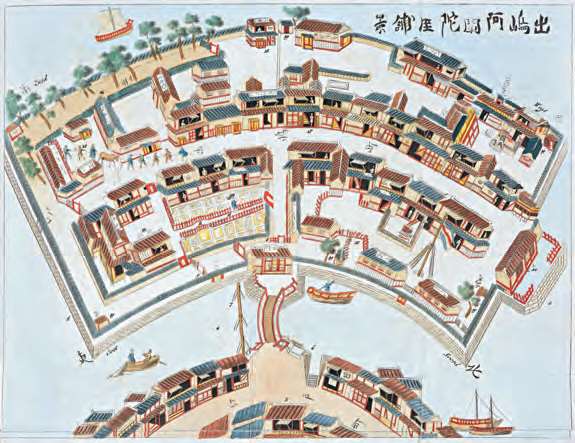 长崎出岛平面规划图(1824—1825年,现藏于荷兰皇家图书馆)。江户幕府执行“锁国”政策后,荷兰人只能在长崎的扇形人工岛上居住以及设立贸易站[参见第63章]