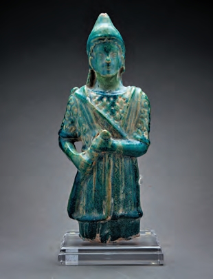 帕提亚彩陶武士像(公元2世纪至4世纪,出土于叙利亚)。帕提亚帝国又称安息帝国,位于伊朗,曾与西汉、罗马、贵霜帝国并立,成为当时的亚欧四大强国之一[参见第27章]