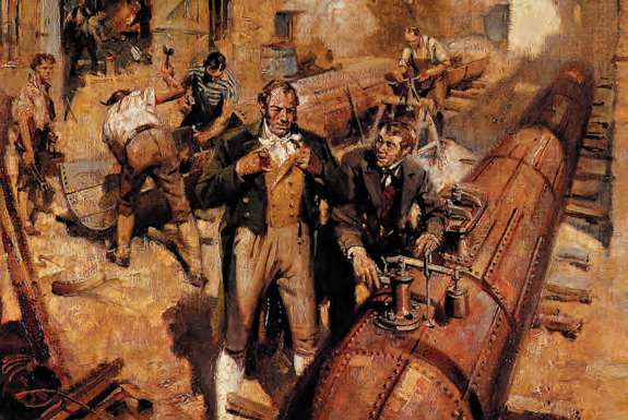 1804年,英国工程师特里维西克把瓦特的蒸汽机应用于运输业,制成了世界上第一台可以实际运作的蒸汽机车,为19世纪蒸汽动力机械的发展奠定了基础[参见第58章]