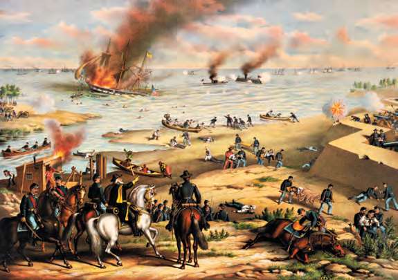 汉普顿罗兹海战是美国南北战争中最著名的一场海战,北军的“莫尼特”号和南军的“梅里马克”号进行了历史上第一次铁甲舰的对决(Kurz & Allison,1889年)[参见第60章]