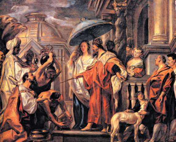 哈隆·拉希德是阿拉伯帝国阿拔斯王朝最著名的哈里发,因与法兰克国王查理曼结盟而蜚声西方,图为拉希德的贡使面见查理曼(Jacob Jordaens,1663年)[参见第46章]