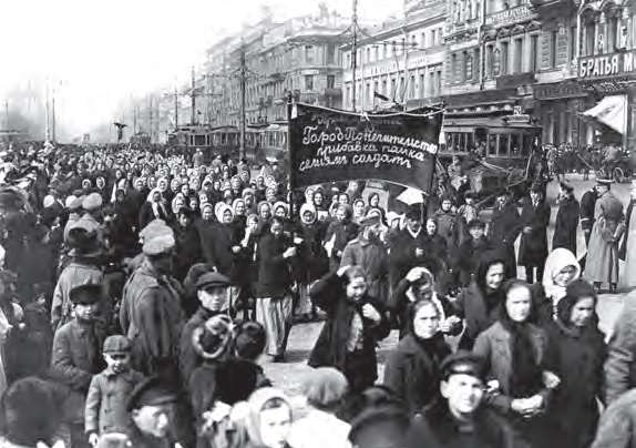 1917年的国际妇女节这天(俄历2月23日),俄国工人们纷纷走上街头,发动大罢工,揭开了二月革命的序幕,并最终推翻了沙皇的统治(Kevin Murphy)[参见第66章]
