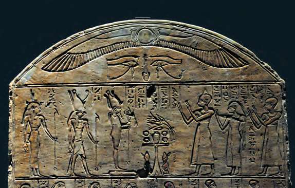 罗马统治时期祭祀拉–哈拉克提神的墓碑,描绘了古埃及“三位一体”的神奥西里斯、荷鲁斯与伊希斯(公元1世纪至2世纪,现藏于慕尼黑埃及艺术博物馆)[参见第36章]