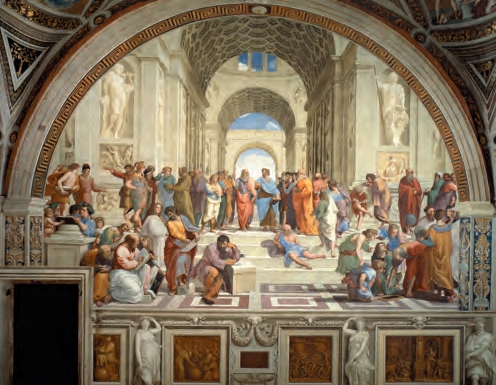 《雅典学院》(1511年)是拉斐尔的一幅名作,他打破时空界限,将各个不同学科领域的文化名人汇聚一堂,以纪念古希腊历史上这一思想的“黄金时代”[参见第23章]