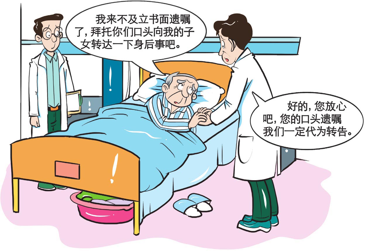 第一千一百三十八条 遗嘱人在危急情况下,可以立口头遗嘱。口头遗嘱应当有两个以上见证人在场见证。危急情况消除后,遗嘱人能够以书面或者录音录像形式立遗嘱的,所立的口头遗嘱无效。