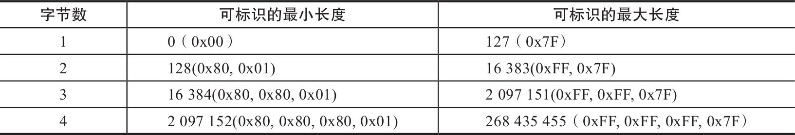 这个字段最少一个字节,最多4个字节。其中,每一个字节的最高位叫作延续位(Continuation Bit),用于标识在这个字节之后是否还有一个用于表示剩余长度的字节。剩下的低7位用于标识值,范围为0~127。