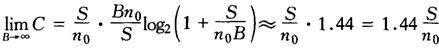 所以当信号功率与噪声功率谱密度n 0 一定时,无限增大信号带宽,信道容量趋于一定值。