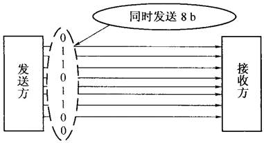 并行传输是指将代表信息的数字码元序列以成组的方式在两条或两条以上的并行信道上同时传输。