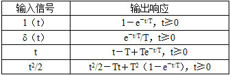 一阶系统对典型输入信号的时间响应如表3-1-2所示。