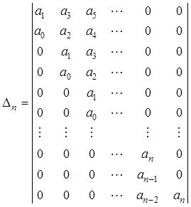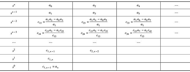 D(s)=a 0 s n +a 1 s n - 1 +…+a n - 1 s+a n =0,a 0 >0