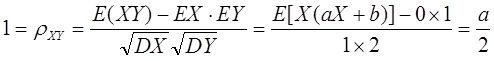 【解析】 方法一:由X~N(0,1),Y~N(1,4)知EX=0,DX=1,EY=1,DY=4。由于ρ XY =1,所以存在常数a,b,使得P{Y=aX+b}=1,从而EY=aEX+b,得b=1,而