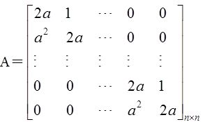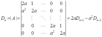 假设n≤k时,D k =(k+1)a k ,则当n=k+1时,有D k + 1 =2aD k -a 2 D k - 1 =2a(k+1)a k -a 2 ka k - 1 =(k+2)a k + 1 。
