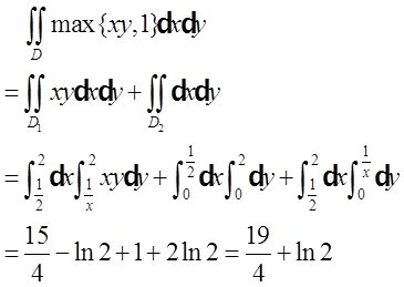 解: 曲线xy=1将区域D分成如图3所示的两个区域D 1 和D 2 。则有