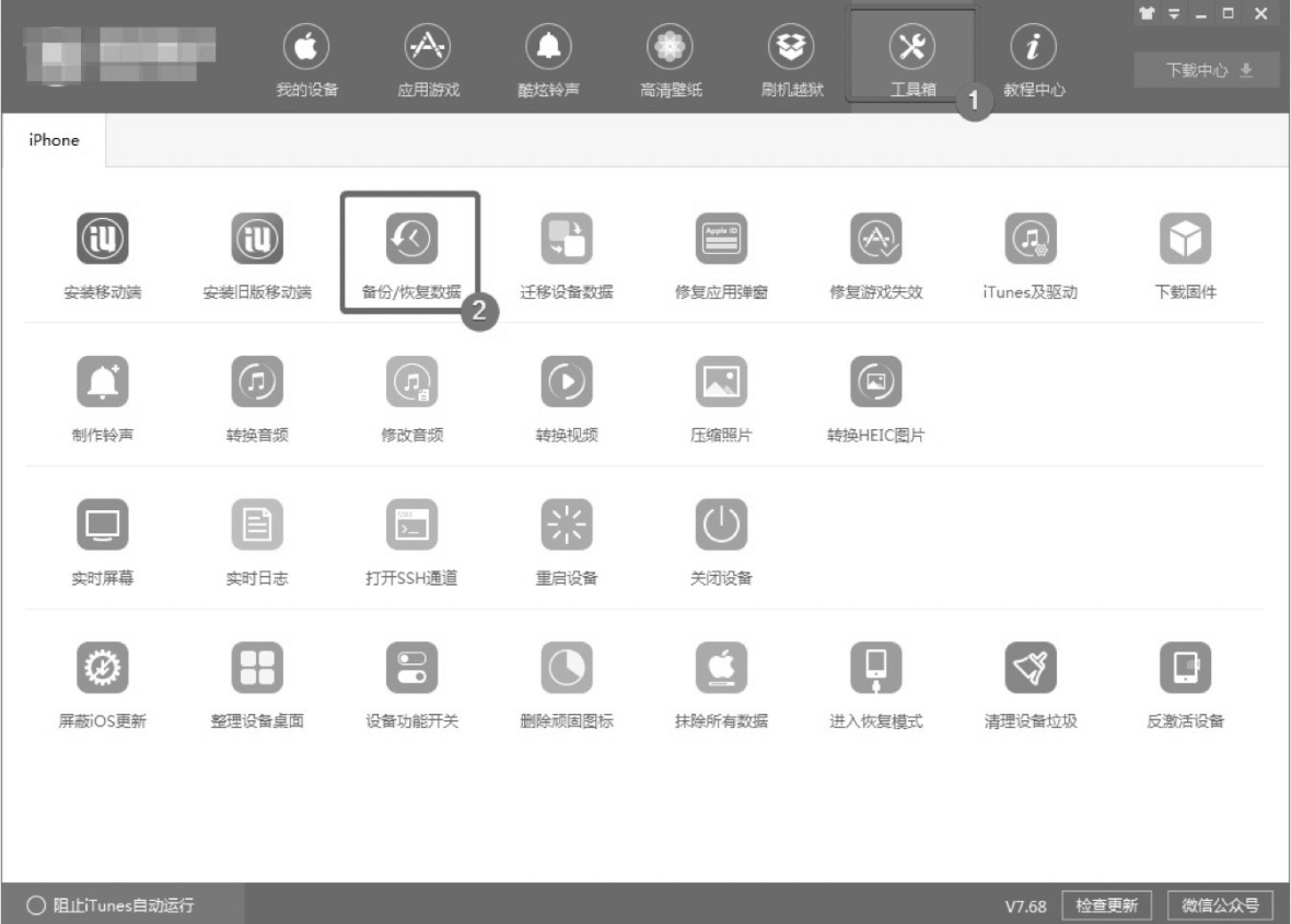 备份恢复是对iOS设备某一特定时期的数据进行备份,以备在需要时将设备恢复到某一时期的操作。例如,在安装某一应用程序之前先进行备份,然后使用完应用程序后进行备份还原,就会将设备还原到备份时的状态,而且一些系统的属性如idfa、idfv等信息会发生变化。如图2.10所示,经过测试使用某助手进行备份还原的时间成本仅1分钟,并且可以批量操作。