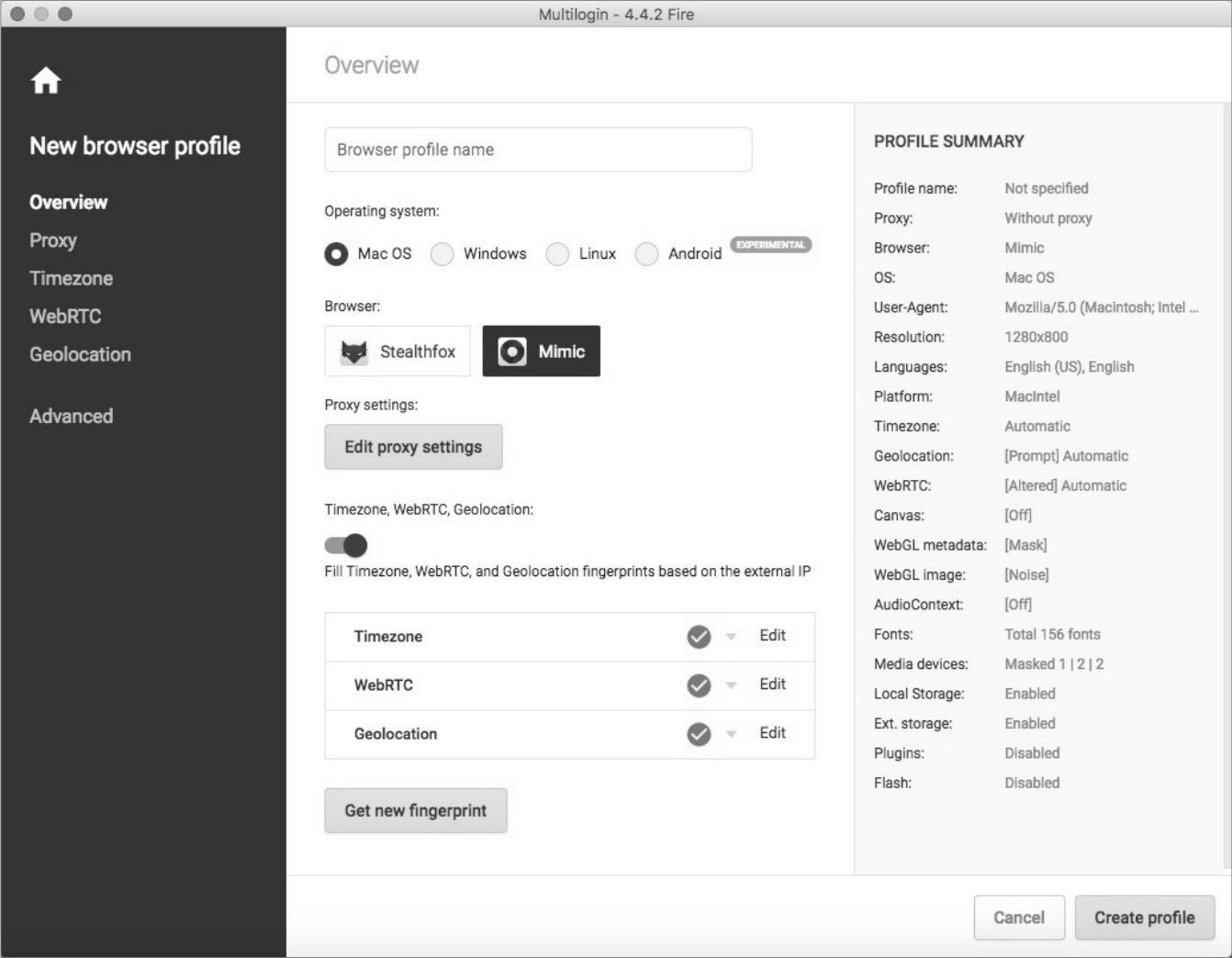 国外还有很多专业的公司售卖付费浏览器软件,如图2.15和图2.16所示,Antidetect和Multilogin 等工具通过修改Chrome 和Firefox内核,自定义浏览器对象参数,达到伪造新浏览器的目的,此外还提供自动代理、群控、cookie 机器人、设备标准库等功能,可视化界面方便用户操作,功能十分强大。