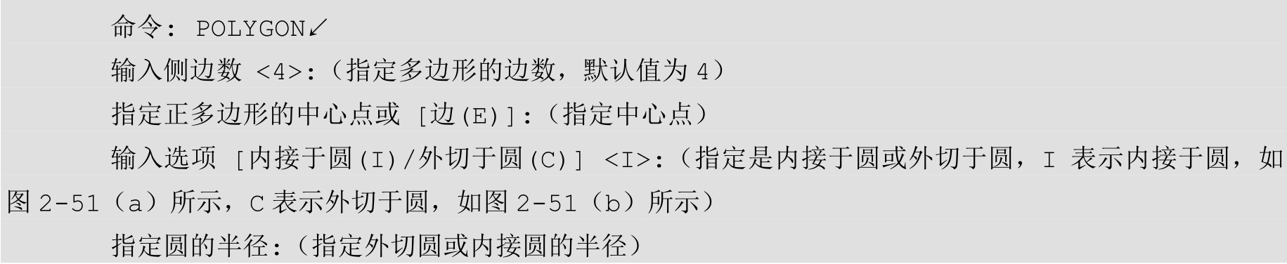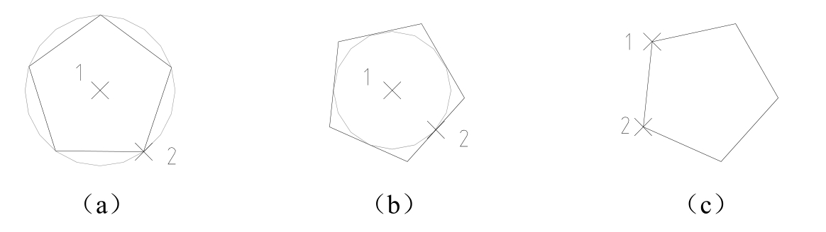 如果选择“边(E)”选项,则只要指定多边形的一条边,系统就会按逆时针方向创建该正多边形,如图2-51(c)所示。