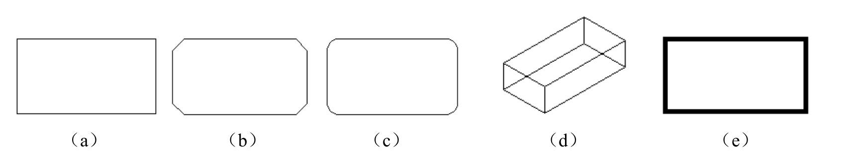 用户可以直接绘制矩形,也可以对矩形进行倒角或倒圆角,还可以改变矩形的线宽。