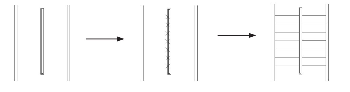 本实例利用“直线”命令绘制墙体与扶手,利用“定数等分”命令将扶手线等分,再利用“直线”命令根据等分点绘制台阶,从而绘制出楼梯,绘制流程如图2-55所示。