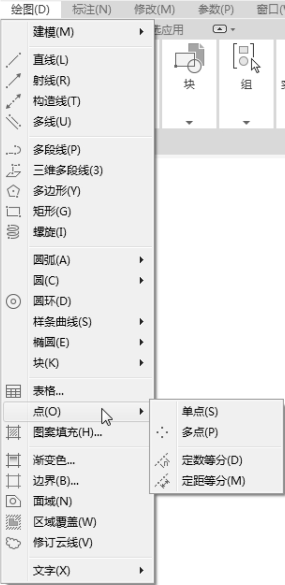菜单栏:“绘图”→“点”→“单点”/“多点”。