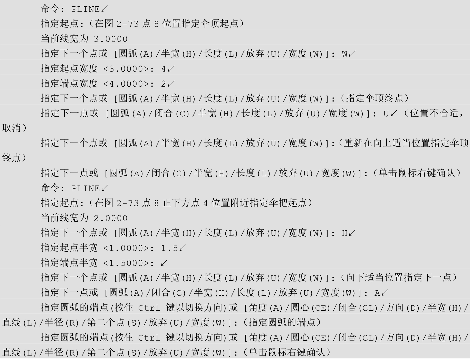 重复“圆弧”命令绘制其他伞面辐条,绘制结果如图2-74所示。