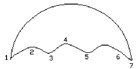 命令: SPLINE↙ 当前设置: 方式=拟合 节点=弦 指定第一个点或 [方式(M)/节点(K)/对象(O)]:(指定样条曲线的第一个点1,如图2-72所示) 输入下一个点或 [起点切向(T)/公差(L)]: 指定下一点:(指定样条曲线的下一个点2) 输入下一个点或 [端点相切(T)/公差(L)/放弃(U)]:(指定样条曲线的下一个点3) 输入下一个点或 [端点相切(T)/公差(L)/放弃(U)/闭合(C)]:(指定样条曲线的下一个点4) 输入下一个点或 [端点相切(T)/公差(L)/放弃(U)/闭合(C)]:(指定样条曲线的下一个点5) 输入下一个点或 [端点相切(T)/公差(L)/放弃(U)/闭合(C)]:(指定样条曲线的下一个点6) 输入下一个点或 [端点相切(T)/公差(L)/放弃(U)/闭合(C)]:(指定样条曲线的下一个点7) 输入下一个点或 [端点相切(T)/公差(L)/放弃(U)/闭合(C)]: 指定起点切向:(在1点左边顺着曲线向外指定一点并单击鼠标右键确认) 指定端点切向:(在7点左边顺着曲线向外指定一点并单击鼠标右键确认)