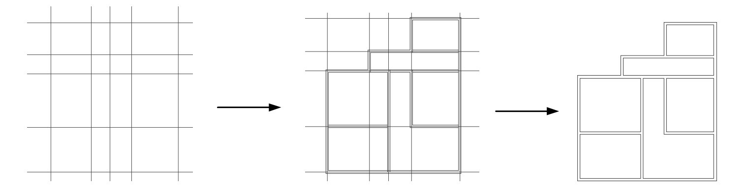 本实例利用“构造线”与“偏移”命令绘制辅助线,再利用“多线”命令绘制墙线,最后编辑多线得到所需图形,绘制流程如图2-84所示。