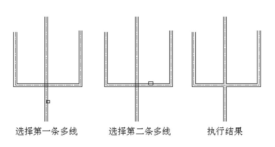 选择完毕后,第二条多线被第一条多线横断交叉。系统继续提示如下:
