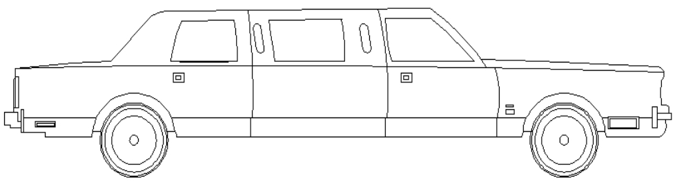 本例利用“多段线”命令绘制车壳,再利用“圆”“直线”“复制”等命令绘制车轮、车门、车窗,最后细化车身,如图2-125所示,通过本例的绘制过程要求读者掌握相关命令的使用方法。