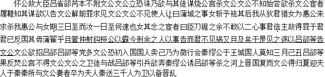 答: 怀公故大臣吕省、郤芮本不附文公,文公立,恐诛,乃欲与其徒谋烧公宫,杀文公。文公不知。始尝欲杀文公宦者履鞮知其谋,欲以告文公,解前罪,求见文公。文公不见,使人让曰:“蒲城之事,女斩予袪。其后我从狄君猎,女为惠公来求杀我。惠公与女期三日至,而汝一日至,何速也?女其念之。”宦者曰:“臣刀锯之余,不敢以二心事君倍主,故得罪于君。君已反国,其毋蒲、翟乎?且管仲射钩,桓公以霸。今刑余之人以事告而君不见,祸又且及矣。”于是见之,遂以吕、郤等告文公。文公欲招吕、郤,吕、郤等党多,文公恐初入国,国人卖己,乃为微行,会秦缪公于王城,国人莫知。三月己丑,吕、郤等果反,焚公宫,不得文公。文公之卫徒与战,吕、郤等引兵欲奔,秦缪公诱吕、郤等,杀之河上,晋国复而文公得归。夏,迎夫人于秦,秦所与文公妻者卒为夫人。秦送三千人为卫,以备晋乱。