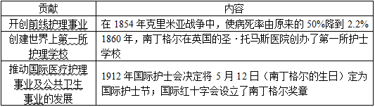 表1-2 南丁格尔的贡献