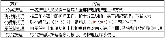表1-4 护理工作方式
