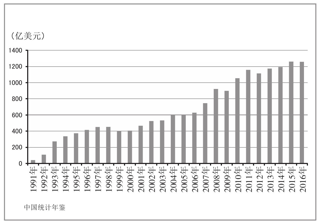 笔者和中国的交流始于1991年,当时的情况会在后文中介绍。笔者到中国时,看到街景,实际和中国人接触,亲身感受到真实中国的呼吸,就理解了中国的和平主义。只有亲身感受到这一点,外资企业在中国的投资才会越来越多。1991年外资对中国的直接投资完成额为4388万美元。2015年增长到12.6267亿美元,增长了27.8倍。25年间实际有162亿美元的外资投资。1980年访问中国的外国人仅有53万人次,2016年达到2815万人次,是1980年的53倍。