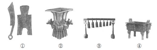 【解析】B项,图②是四羊方尊,属于商朝晚期偏早青铜器,而大禹所在的时代还在夏朝之前。因此,四羊方尊不是大禹铸造的。A项,图①左边是刀币,右边是布币,二者都是前秦时期的货币。C项,图③是编钟,是我国古代一种重要的打击乐器,多用于宫廷的演奏,每逢征战、朝见或者祭祀等活动时,都要演奏编钟。D项,图④是鼎,是我国古代最重要的青铜器之一。鼎本是烹饪之器,后来发展为祭祀神灵的一种重要礼器。大禹铸九鼎之后,鼎成为传国重器,被视为国家和权力的象征。