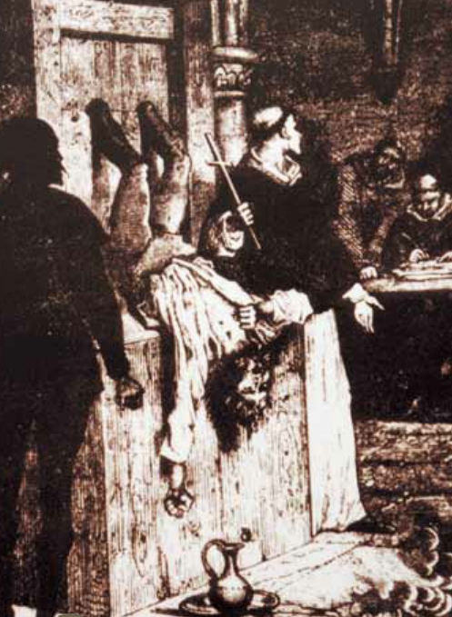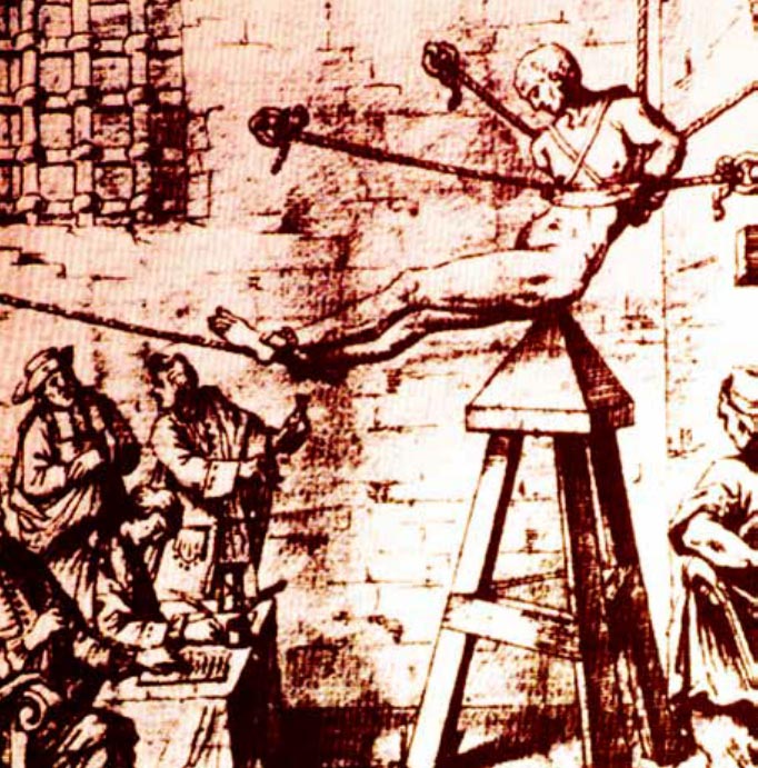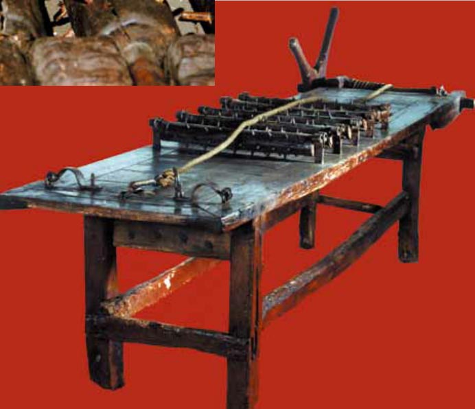 受害者会被用绞盘“拉长”5英寸或12英寸,这一不可思议的长度来源于手臂和腿部所有关节的脱位和拉伸、脊柱的断裂,当然还有四肢、髋部和腹部的肌肉的破裂和分离——不用说,它所造成的后果有多少是致命性的。